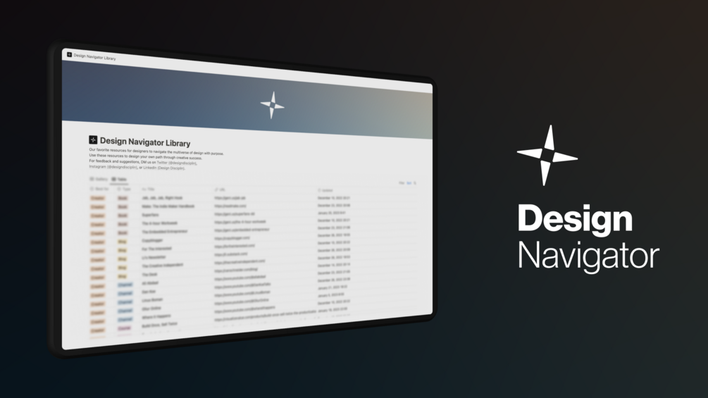 Access to the Design Navigator Library is free for Design Disciplin community members – visit designdisciplin.com and join our membership program to gain access to the Library, along with our private community server and other offerings!